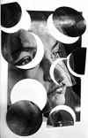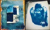 Experimental Cyan Photo Montage from a series from the early 90's: Mixed Medium, Newspaper + Photo